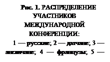 Шкала наименований. К этой шкале относятся материалы, в которых изучаемые объекты отличаются друг от друга по их качеВнству. При обработке таких материалов нет никакой нужды в том, чтобы располагать эти объекты в каком-то порядке, исходя из их характеристик. В принципе объекты можно располагать в любой последовательности. Вот пример: изучается состав международной научной конференции. Среди участников есть французы, англичане, датчане, немцы и русские (рис. 1). Имеет ли значение порядок, в котором будут расположены участники при изучении состава конВнференции? Можно распоВнложить их по алфавиту, это удобно, но ясно, что никаВнкого принципиального знаВнчения в этом расположении нет. При переводе этих маВнтериалов на другой язык (а значит, и на другой алфаВнвит) этот порядок будет нарушен. Можно располоВнжить национальные группы по числу участников. Но при сравнении этого материала с материалом другой конференции найдем, что вряд ли этот порядок окажется таким же. Отнесенные к шкале наВнименований объекты можно размещать в любой последовательности в зависимости от цели исследования.