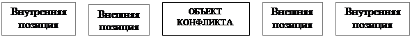 В структуре конфликта также выделяют внутреннюю и внешнюю позицию участников.