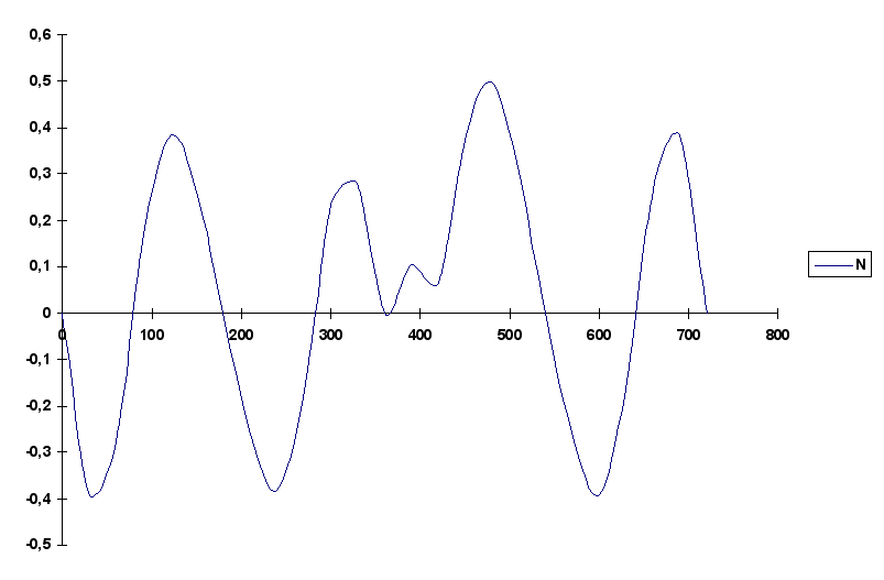 Рис.5 График радиальной силы N в зависимости от угла поворота кривошипа .
