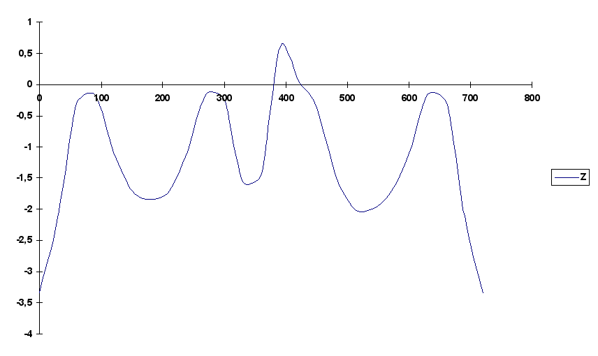 Рис 6. График зависимости нормальной силы от угла поворота кривошипа.