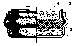 1 тАУ стальной корпус с положительным электродом; 2 тАУ пористая прокладка; 3 тАУ резиновая уплотняющая прокладка; 4 тАУ крышка корпуса с отрицательным электродом.