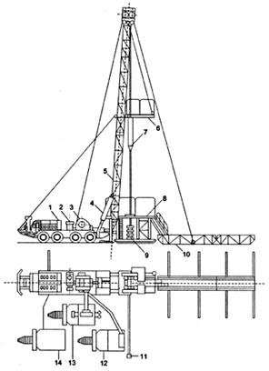 Передвижные буровые установки типа ПБУ - 2 с комплектом бурового и вспомогательного инструмента предназначены для бурения скважин различного назначения в породах до 4 категории буримости. Основной способ бурения вращательный с подвижным вращателем.