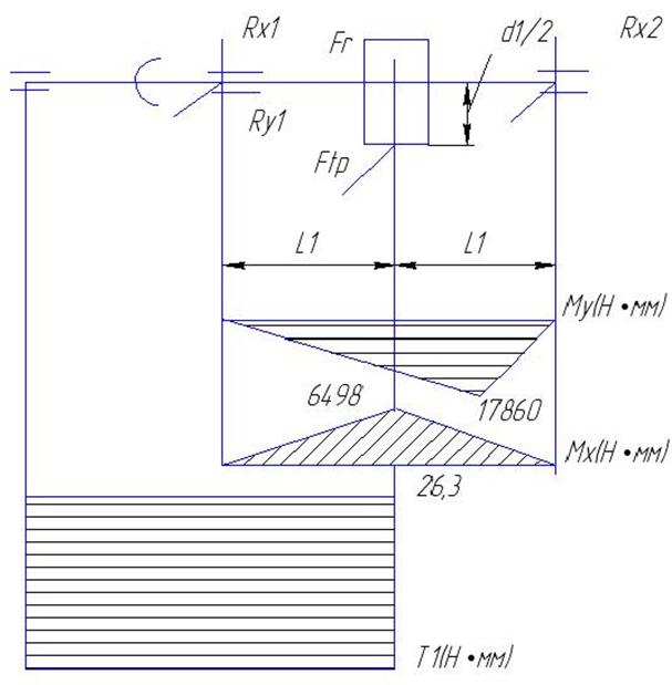 Будем производить расчет для предположительно опасных сечений каждого из валов.