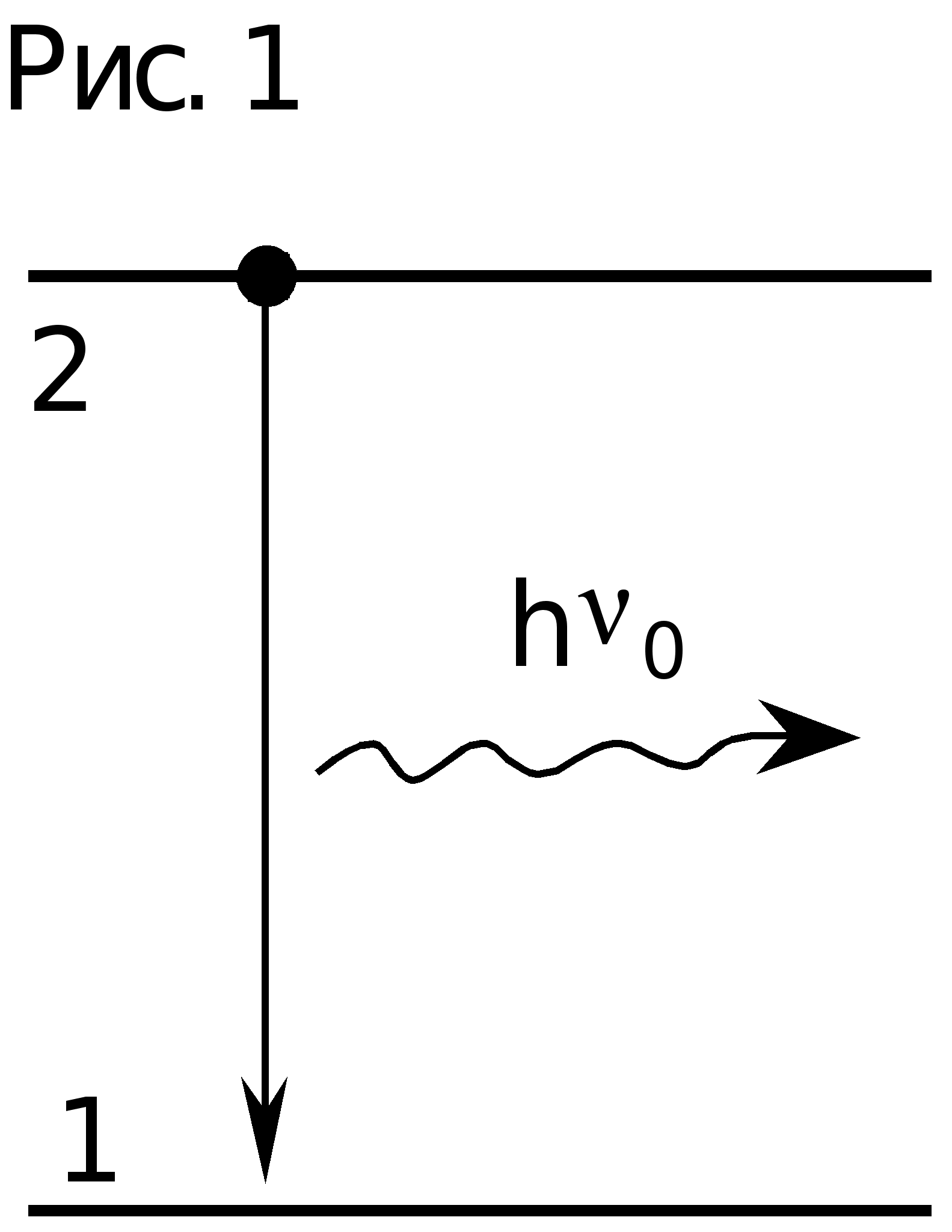 Возбуждённая частица может перейти в менее энергетическое состояние самопроизвольно в результате спонтанного излучения, или, как его ещё называют, радиационного распада (рис. 1). Спонтанное излучение имеет чисто квантовую природу. Согласно квантовой механике атом или молекула не могут находиться в возбуждённом состоянии бесконечно долго. Возбуждённое состояние распадается с конечной скоростью, определяемой вероятностью этого перехода в единицу времени