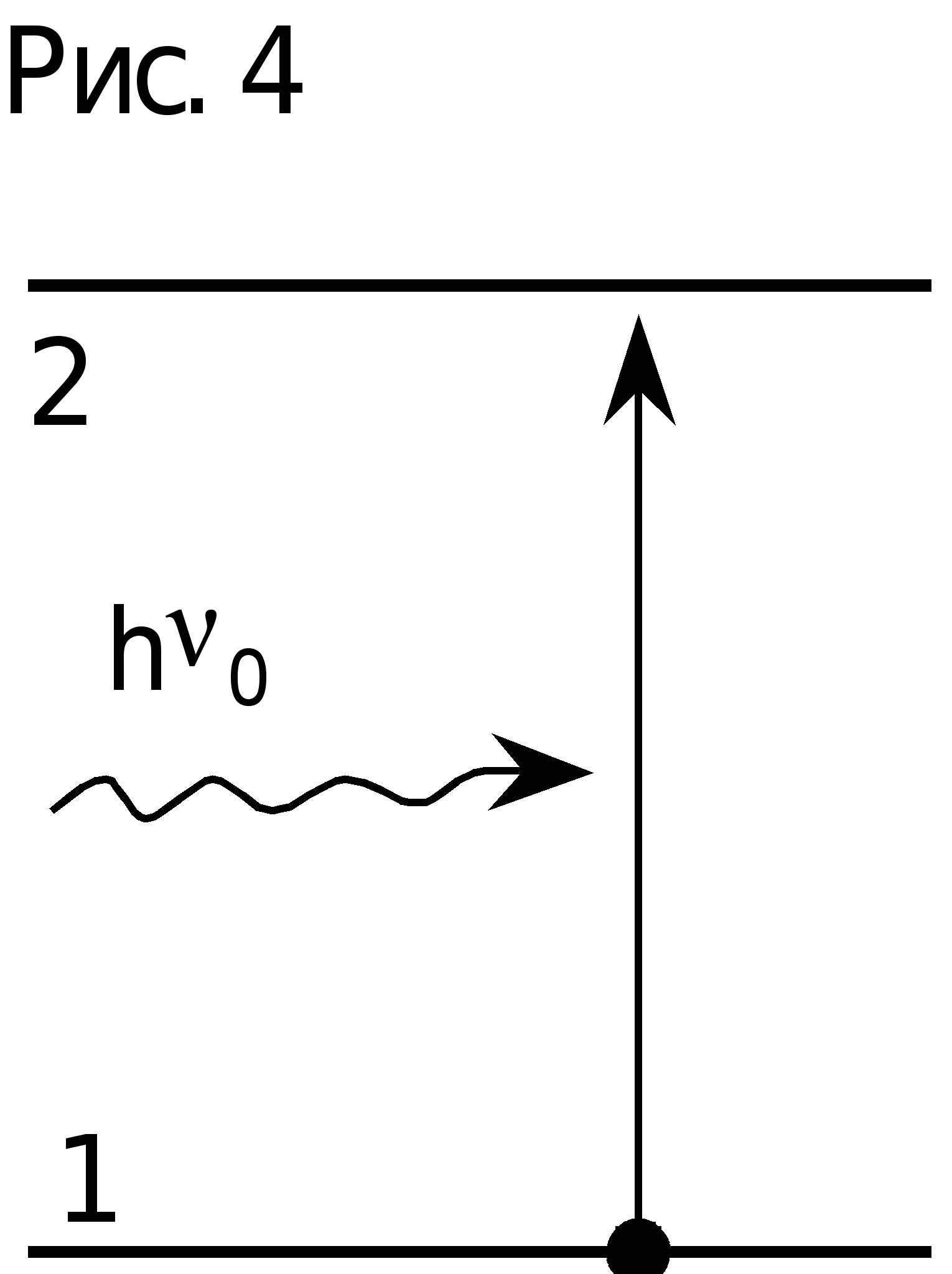 вантовой системы из состояния 1 в состояние 2, что соответствует резонансному поглощению квантов, протекающему по схеме А(1)+h0A(2) (рис.4) возможны переходы по схеме А(2)+h0А(1)+2h0 (рис.5). Данный процесс индуцирования или вынужденного излучения и служит основой квантовой электроники.