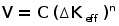 - эффективный размах коэффициента интенсивности напряжения, соответствующий открытой трещине