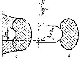 Рис. 6. Схема распространения сопряженных берегов трещины при значениях К=Кmax (a) и К=Кcl (б). Здесь