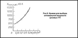 Ориентировочное количество необходимых трансформаторов одинаковой оптимальной экономической мощности для покрытия всех электрических нагрузок цеха при неравномерном распределении этих нагрузок по площади цеха и при найденной средней плотности нагрузок цеха