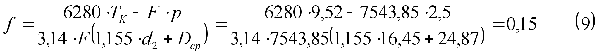 тАУ расчётный диаметр резьбы, мм;