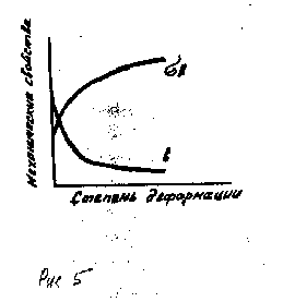 а) изменяются механические характеристики - увеличивается предел упругости, текучести, прочности, твердость; уменьшается - относительное удлинение (рис. 5), сужение, ударная вязкость ,