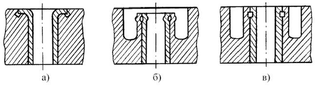 а) замковое; б) стыковое с канавкой, полученное гибкой; в) стыковое с канавкой, полученной резанием.