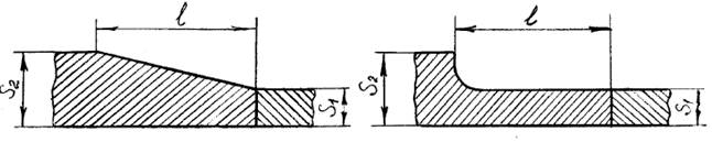 где S1, S2 тАУ толщины свариваемых соединений, l тАУ длина утоненной части.