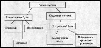 По институциональному признаку рынок ссудных капиталов подразумевает наличие двух основных звеньев: кредитной системы i шнка ценных бумаг