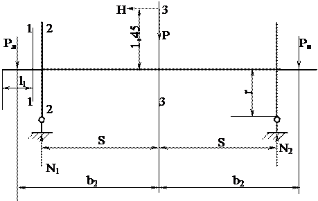 где N1тАУ вертикальная реакция рельсов для левого колеса.