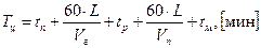,где tп = V×Hвр / 100 - время погрузки грунта, мин; Нвр- норма машинного времени, учитывающая разработку экскаватором 100 м3 грунта и погрузку в транспортные средства, маш.мин. [2-стр.44,табл.7]; L - расстояние транспортировки грунта, км; vг - средняя скорость автосамосвала, км/ч, в загруженном состоянии[4-табл.7]; vп = 25..30 км/ч - средняя скорость автосамосвала в порожнем состоянии; tр = 1..2 мин - время разгрузки; tм = 2..3 мин - время маневрирования перед погрузкой и разгрузкой.
