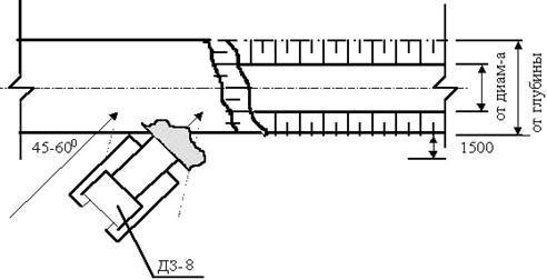Обратная засыпка производится бульдозером марки ДЗ -8 на базе трактора Т100, с неповоротным отвалом. Грунт перемещается из кавальера рядом с траншеей. Уплотнение грунта не производится ,т.к. газопровод прокладывается в нестесненных условиях(не в городе) и по этому засыпка производится с отметками немного больше отметки уровня земли для естественной осадки грунта.