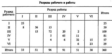 Тесная связь квалификационного состава рабочих с уровнем оплаты их труда и соответственно с издержками производства требует детального анализа квалификационного состава рабочих. Для этой цели используют группировки (ряды распределения) рабочих по разрядам (разумеется, в пределах их численности, оплачиваемой по одной тарифной сетке); для выявления соответВнствия квалификации рабочих сложности выполняемых работ приВнменяют двухмерные комбинационные группировки, в которых