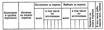 По данным о наличии и движении кадров в целом и по катеВнгориям и группам персонала при необходимости строится баланс движения кадров (баланс ресурсов рабочей силы) по следующей примерной схеме.