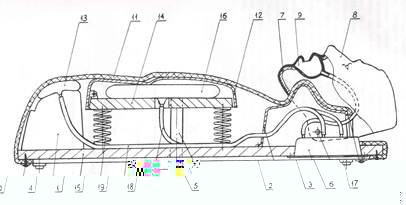 9 тАУ полость рта, 10 тАУ шурупы, 11 тАУ оболочка туловища, 12 - имитатор грудной клетки, 13 тАУ имитатор желудка, 14 тАУ основание, 15 - упругие элементы, 16 тАУ имитатор легких, 17,18,19, - трубопроводы