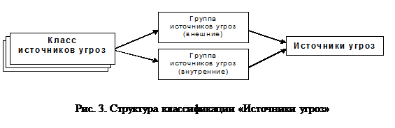 Как видно, анализ негативных последствий реализации угроз предполагает обязательную идентификацию (например, присвоение уникального кода) возможных источников угроз, уязвимостей, способствующих их проявлению и методов реализации, то есть классификацию (рис. 2.).