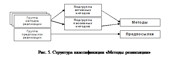 Методы реализации можно разделить на группы по способам реализации (рис. 5.). При этом необходимо учитывать, что само понятие ВлметодВ», применимо только при рассмотрении реализации угроз антропогенными источниками. Для техногенных и стихийных источников, это понятие трансформируется в понятие ВлпредпосылкаВ».