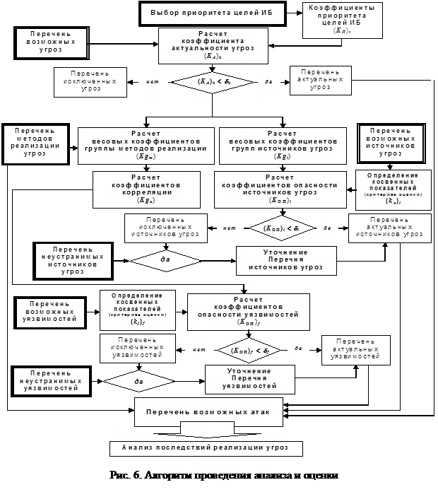 Сам подход к анализу и оценке состояния безопасности информации основывается на вычислении весовых коэффициентов опасности для источников угроз и уязвимостей, сравнения этих коэффициентов с заранее заданным критерием и последовательном сокращении (исключении) полного перечня возможных источников угроз и уязвимостей до минимально актуального для конкретного объекта.