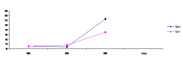 Рис. 1. Изменение объема товарной (Qтп) и реализованной (Qрп) продукции