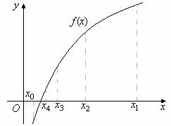 Нам необходимо найти корень уравнения (1.1) на отрезке [a, b]. Рассмотрим отрезок [x0, x1]: [x0, x1]Ì[a, b]. Пусть мы нашли такие точки х0, х1, что f (х0) f(х1) £ 0, т. е. на отрезке [х0, х1] лежит не менее одного корня уравнения. Найдём середину отрезка х2=(х0+х1)/2 и вычислим f(х2). Из двух половин отрезка выберем ту, для которой выполняется условие