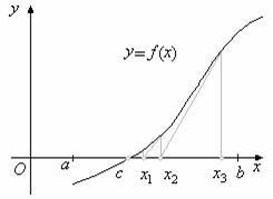 Процесс построения последовательности вложенных стягивающих отрезков методом вилки (дихотомии) является эффективным вычислительным алгоритмом решения уравнения f(x)=0. На n-ом шаге процесса получаем: