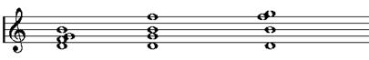 А обращения того же аккорда, построенные от одной ноты "соль", выглядят так: