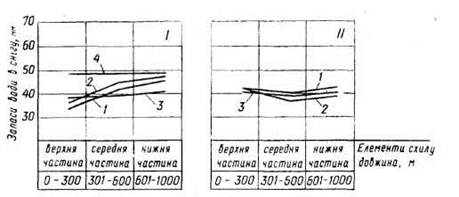 Рис. 1.1. Запаси води в снiгу на пiдвiтреному (РЖ) i навiтреному (II) схилах: