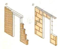 Перегородки з гипсобетонних плит (рис.1.1, а) роздiляють примiщення квартир або квартири мiж собою. Мiжквартирнi перегородки викладають з двох лав плит з повiтряним зазором мiж ними 50 мм.
