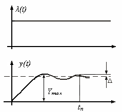 Перерегулирование определяется как относительная величина максимального отклонения управляемой величины y(t) от установившегося значения в переходном процессе (рис.1):