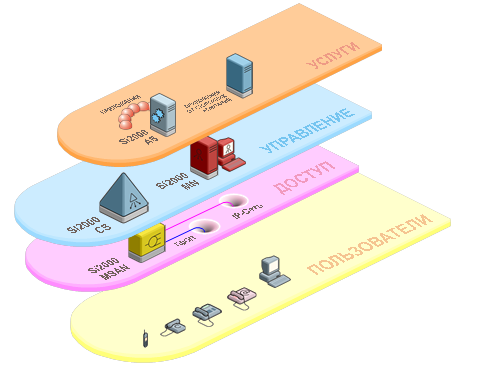 Если представить архитектуру NGN в виде набора плоскостей (Рисунок 7.1), то окажется плоскость абонентского доступа, базирующаяся на грех средах передачи - металлическом кабеле, оптоволокне и радиоканалах. Далее идет плоскость коммутации тАФ коммутации каналов и пакетов. В этой же плоскости находится и структура мультисервисных узлов доступа. Выше располагаются программные коммутаторы (Softswitch), составляющие плоскость программного управления. Выше находится плоскость интеллектуальных услуг и эксплуатационного управления.