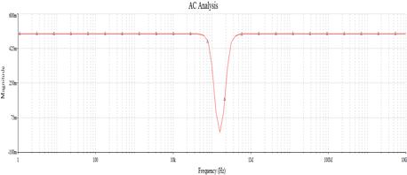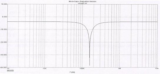 1. Данный фильтр является полосно-задерживающим или режекторным. Об этом наглядно свидетельствует график АЧХ.