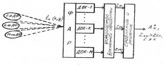 Согласно решающего правила устройство расВнпознавания М портретов должно состоять из устройства пространственВнно-временной и поляризационной обработки принятого сигнала по всем N элементам пространства распознавания, устройства распределеВнния комплексных амплитуд принятого сигнала по элементам пространВнства распознавания (устройства формирования портрета), М каналов устройств оптимальной обработки всех К -х портретов (К=1,2..М), устройства сравнения и принятия решения (рис. 5).