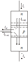Рассмотрим соотношения между токами в транзисторе. Ток эмиттера управляется напряжением на эмиттерном переходе, но до коллектора доходит несколько меньший ток, который можно назвать управляемым коллекторным током iк. упр.. Часть инжектированных из эмиттера в базу носителей рекомбинирует, поэтому