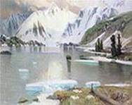 Можно представить себе живописные достоинства большой картины Белуха с северной стороны, если посмотреть на великолепный этюд Ак-Кем Алтайского музея. Кроме выразительности его нежно-зеленых, голубых и пепельно-светлых красок, в нем хочется отметить стройность всего композиционного решения.