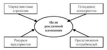 Рис.1. Факторы, влияющие на определение рекламных целей