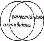 Поняття ВлактивнiстьВ» та ВлсамостiйнiстьВ» також близькi один до одного, бо самостiйнi роботи i одним з головних шляхiв активiзацii пiзнання. Тому графiчно взаiмозв'язок мiж цими поняттями виглядатиме, як на рис. 2.