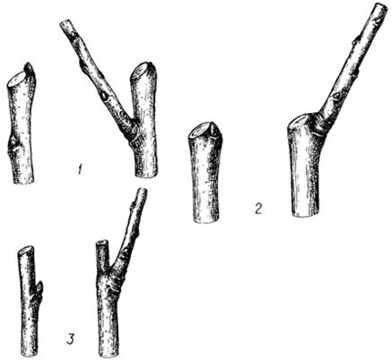 Применяется еще в питомнике, где над привитой почкой удаляют ветку подвоя. После посадки подрезку веток проводят с целью получения разветвлений, необходимых для образования скелетных и полу- скелетных ветвей, придания им нужной силы развития и правильного размещения в том объеме, который отводится кроне в соответствии со схемой посадки.