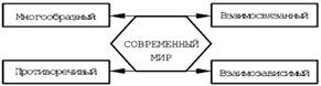 Настоящее время - это рубеж смены эпох, вступления современного мира в качественно новую фазу развития. Наиболее характерные черты современного мира (рис.1):