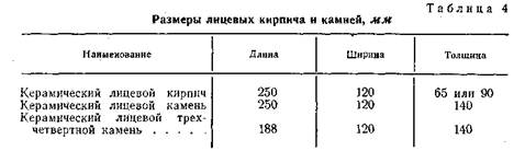 Размеры кирпича и камней должны соответствовать указанным в табл. 4.