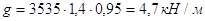 Расчётная нагрузка на 1 м при ширине плиты 1,4 м с учётом коэффициента