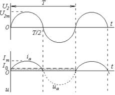 В течение положительного полупериода напряжения u2, когда ток i нарастает, индуктивная катушка Lф запасает энергию, а в отрицательный полупериод тАУ энергия расходуется на поддержание тока.
