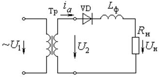 Однополупериодная схема - в которой ток проходит через вентиль только в течение одного полупериода переменного напряжения источника.