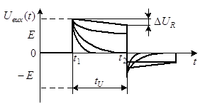 виду напруги на резисторi R буде змiняться по експонентному законi: