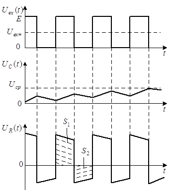 на iмностi починаiться накопичуватися напруга таким чином, що через визначений час на iмностi установиться деяке середнi значення напруги, рiвна постiйноi складовоi вхiдного сигналу. Збiльшення напруги на iмностi