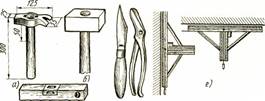 а- штукатурный молоток, б- молоток кулачек, в- штукатурный нож, г-ножницы для резки металла, д- уровень, е- ватерпас, ж- водяной уровень, з- угольник с передвижной планкой.