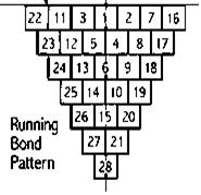 Щоб викласти плитку таким чином, потрiбно починати з центру i викладати трикутник. При облицювання у розбiг вертикальнi шви мiж плитками в кожному ряду перериваються, утворюються вертикальнi "пунктирнi" лiнii, тiльки в кутах облицювання маi суцiльнi вертикальнi шви.